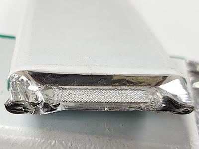 (一):鋰電池多層銅箔/鋁箔極耳焊接 (二):焊接后表層箔材外觀無破損 (三):180°撕拉力>50N,殘留面積>70%