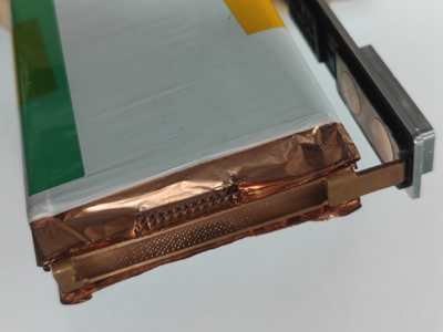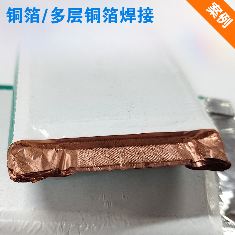 (一):鋰電池多層銅箔/鋁箔極耳焊接 (二):焊接后表層箔材外觀無(wú)破損 (三):180°撕拉力>50N,殘留面積>70%
